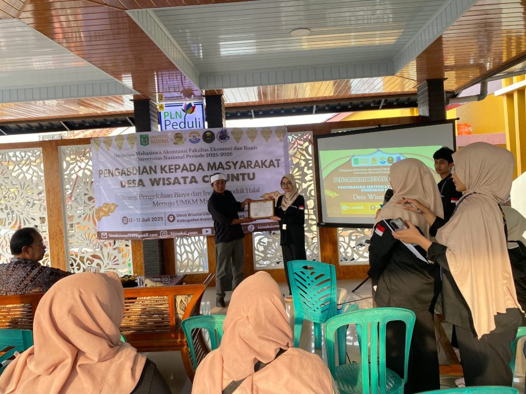 Penyampaian tentang materi Associate Wealth Planner & Perencanaan Keuangan Pribadi oleh AWP, dilanjut Penutupan dan sesi foto bersama antara panitia dan BUMDes. Di joglo Desa Wisata Cibuntu, 12 Juli 2025. Jakarta (UNAS) – Himpunan Mahasiswa Akuntansi (HIMAKSI) Universitas Nasional menggelar kegiatan Pengabdian kepada Masyarakat (PKM) di Desa Wisata Cibuntu, Kabupaten Kuningan, Jawa Barat, pada Jumat–Sabtu, […]