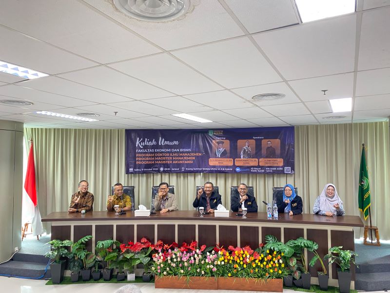 Acara dibuka secara resmi oleh Dekan Fakultas Ekonomi dan Bisnis, Prof. Dr. Edi Sugiono, S.E., M.M., yang dalam sambutannya menyampaikan apresiasi kepada seluruh pihak penyelenggara serta menekankan pentingnya kegiatan kuliah umum sebagai sarana memperluas wawasan mahasiswa terhadap isu-isu aktual di bidang ekonomi dan perpajakan.