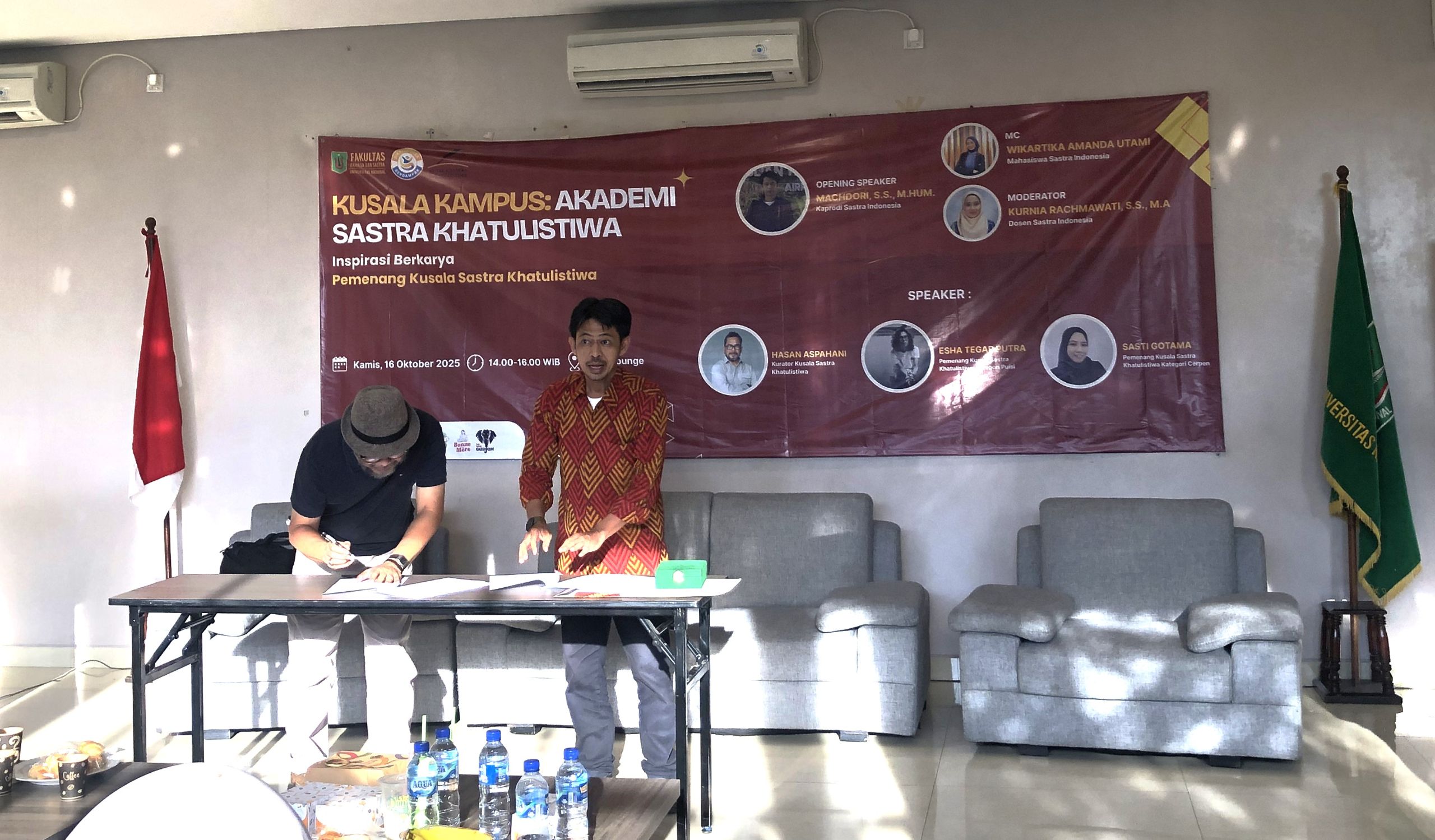 Jakarta (UNAS) – Program Studi (Prodi) Sastra Indonesia Universitas Nasional (UNAS) menggelar kegiatan bertajuk “Kusala Kampus: Akademi Sastra Khatulistiwa” dengan tema “Inspirasi Berkarya Pemenang Kusala Sastra Khatulistiwa”, pada Kamis (16/10/2025), di Exhibition Room, Unas Lounge, Kampus UNAS Pejaten, Jakarta.